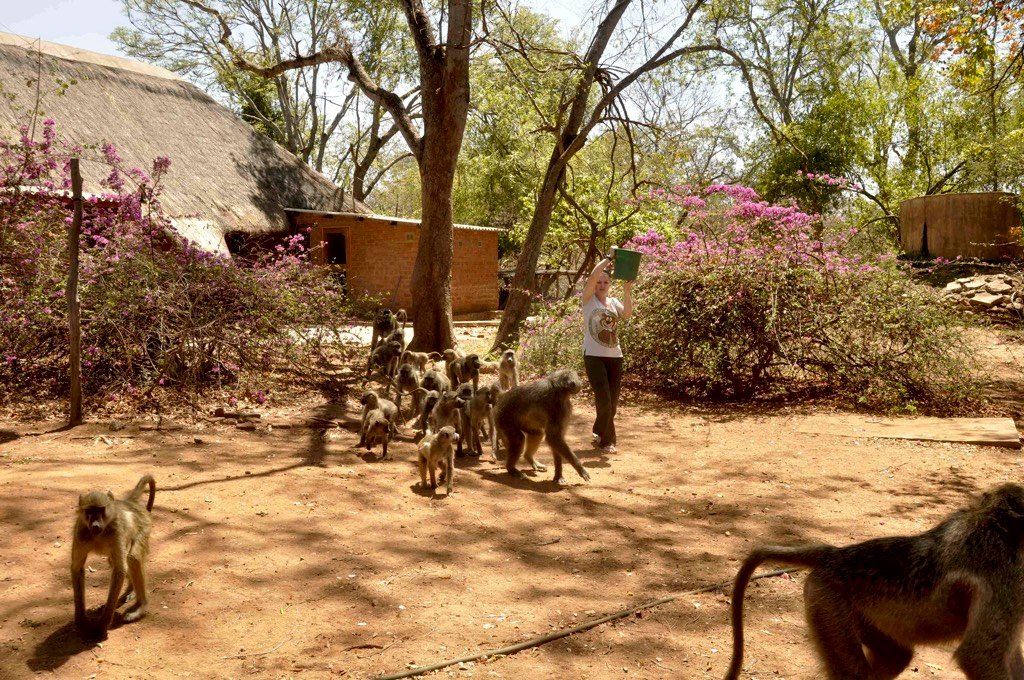 On Friday 28th October, their second day at Turgwe Hippo Trust, they joined me feeding all the other wildlife at the feeding stations. Then it came the turn of Tembia hippo and his family of 8 hippos. It is a drive where one has to engage low range to cross a dry riverbed and climb a very steep bank to follow a route for five kilometres that is real tough on a vehicle. The average speed can be no more than 20km per hour due to the narrowness of the route, and we are the only people ever driving up there. Jill & Wendy were in the front of the Land Cruiser with me. Chengetai and Peter, the two game scouts, in the back sitting on bales of hay. We were carrying 160kg of hay, 100kg of meal and 30kg of game cubes.