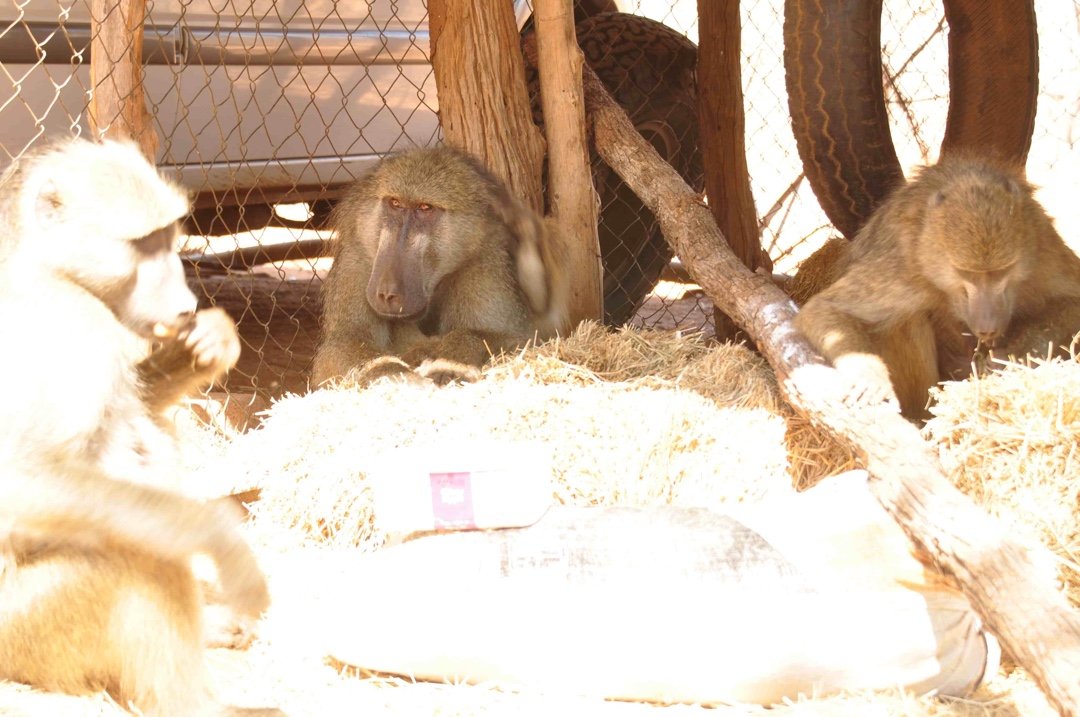 Joe, a massive, elderly male baboon who allowed two humans into his private space. Joe was part of the Hippo Haven wild troop and of them all he had the nicest character. He was the largest and would often be seen with a huge entourage of young juveniles under his protection. He was like the adored grandfather; his special friend was Yogi the baboon whose life we saved. See earlier blog, Yogi was carrying a poachers’ snare tightly wound around his stomach, which would have killed him, had we not managed to remove it.