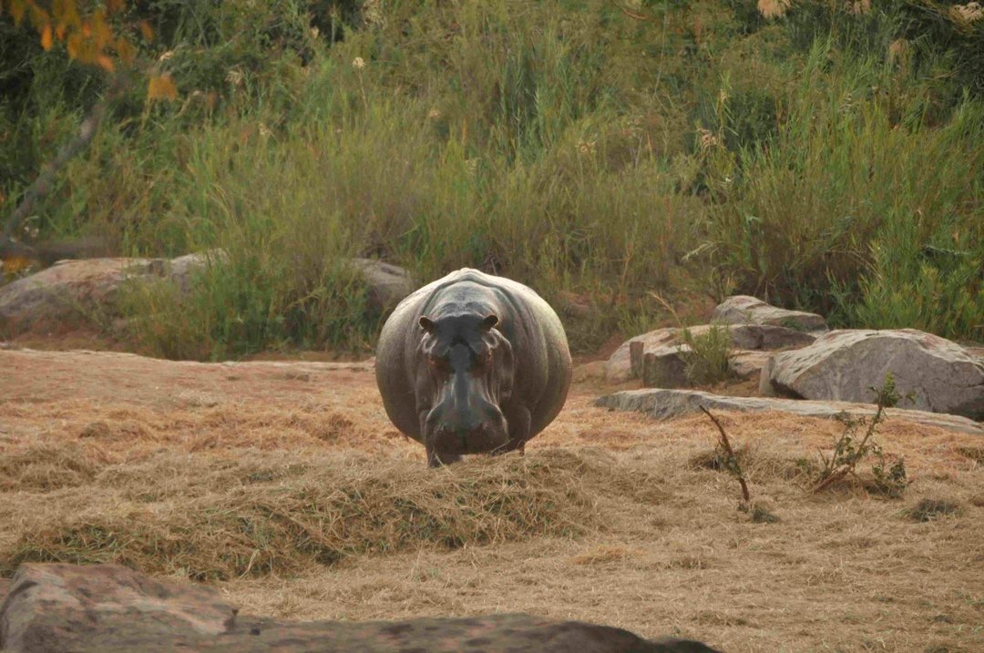 You do not need to shoot at a wild animal in defense; it is much more sensible to remove yourself from their immediate vicinity and with a hippo it is easy you just climb up a tree or a rock and you are OK.