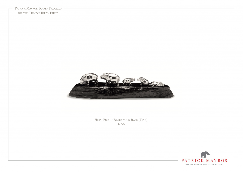 Patrick Mavros luxury jewellery and sculptures are purchased by Royalty as well as anyone with a love of beautiful animal work. Patrick is a great friend to the Turgwe Hippo Trust. He is a Zimbabwean silversmith.