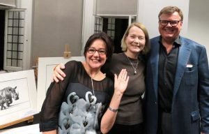 The wonderful Patrick Mavros surprised Karen. Asking her which female hippo and calf were her favourites. She eventually chose Tacha and her calf George. Patrick has kindly declared that he will make ten cufflinks for men and ten pendants for women, of Tacha and George and donate the whole proceeds to the Turgwe Hippo Trust. Patrick is one of the kindest people to the Turgwe Hippo Trust and his generosity at this extra gift is so appreciated, and we thank him with hippo hugs and love.